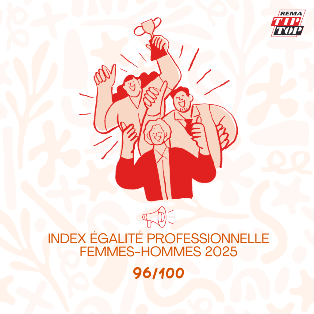 INDEX ÉGALITÉ PROFESSIONNELLE FEMMES-HOMMES 2025 INDEX ÉGALITÉ PROFESSIONNELLE FEMMES–HOMMES 2025 Chez REMA TIP TOP France, l’égalité professionnelle entre les femmes et les hommes reste un engagement fort, inscrit durablement dans nos pratiques et nos valeurs. Nous sommes fiers d’annoncer un score de 96/100 pour l’année 2025, après un score de 98/100 en 2024. Ce résultat […]